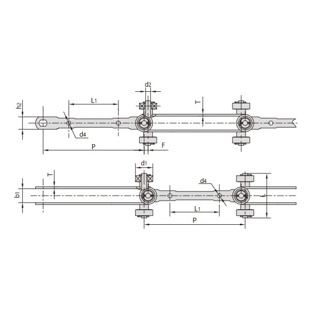 Den dobbeltleddede transportkæde er konstrueret med henblik på høj fleksibilitet og belastningsfleksibilitet. Den unikke struktur gør det muligt for kæden at rotere fleksibelt under belastning og stød, hvilket gør den velegnet til forskellige arbejdsforhold og belastningskrav.