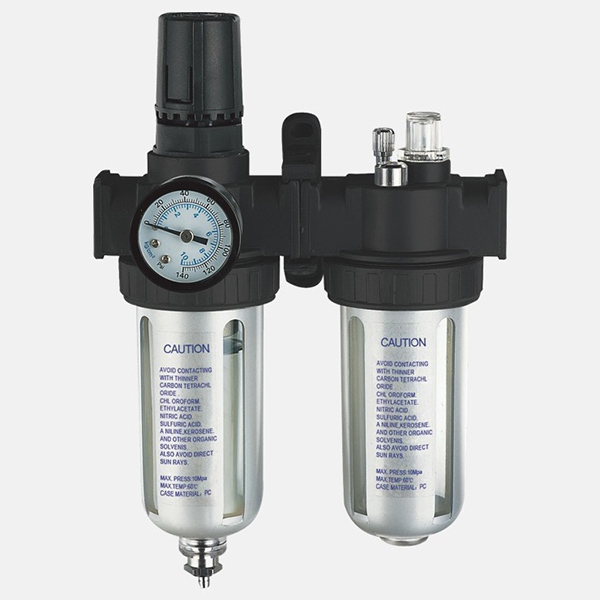 3-i-1 luftfilter, trykregulator og smøreanordning er en almindelig kombinationsenhed i pneumatiske systemer, der integrerer tre funktioner: filtrering, trykregulering og smøring. Den bruges ofte i trykluftsystemer, der kræver ren luft, præcis trykregulering og smøring af pneumatiske værktøjer eller udstyr. Denne kombination muliggør forenklet rørdesign, forbedret systemeffektivitet, forlænget levetid for pneumatiske værktøjer og stabil drift.