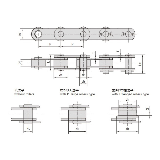 - Transportkæder i Z-serien består hovedsageligt af massiv tap, hul tap, stor rulle og forhøjet kædeplade. Disse komponenter kan konfigureres med forskellige tilbehørsdele for at opfylde specifikke anvendelseskrav i henhold til forskellige arbejdsforhold.